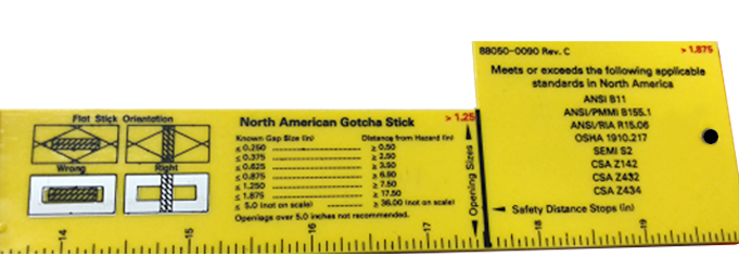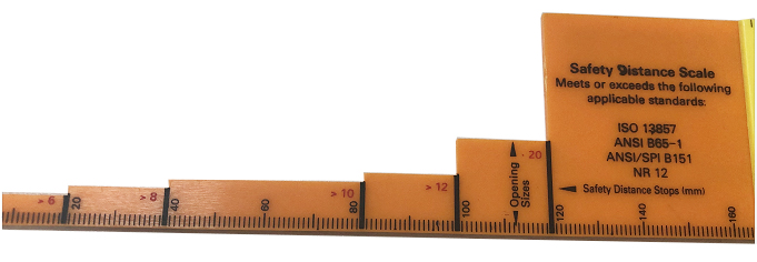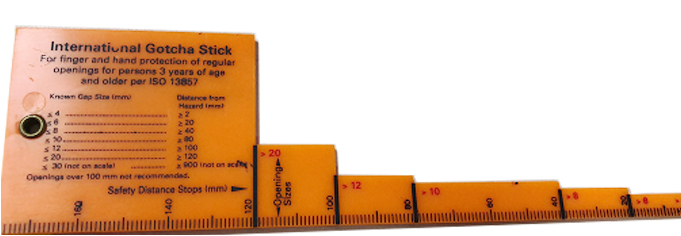 Known gap size (mm) and distance hazard (mm)